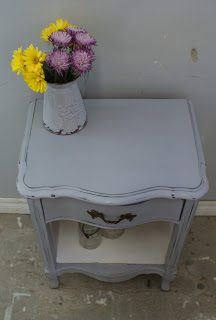 This side table has been refinished in Paris Grey and Pure White chalk paint (AS), distressed and coated with clear wax. This little cutie matches the "Sweet As Pie Dresser" we refinished this week. It's so cute...love, love, love the white and grey.