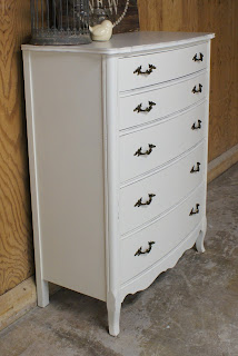 We finally have another bow front dresser up for grabs this week. This gorgeous dresser has been refinished in blue/grey chalk paint (AS), distressed and coated with clear wax. The top has been stained dark walnut and coated with poly. You won't find an amazing dresser like this at Ikea, and we only have one in the shop my friends. So you better act quick, because if you blink you might miss it!